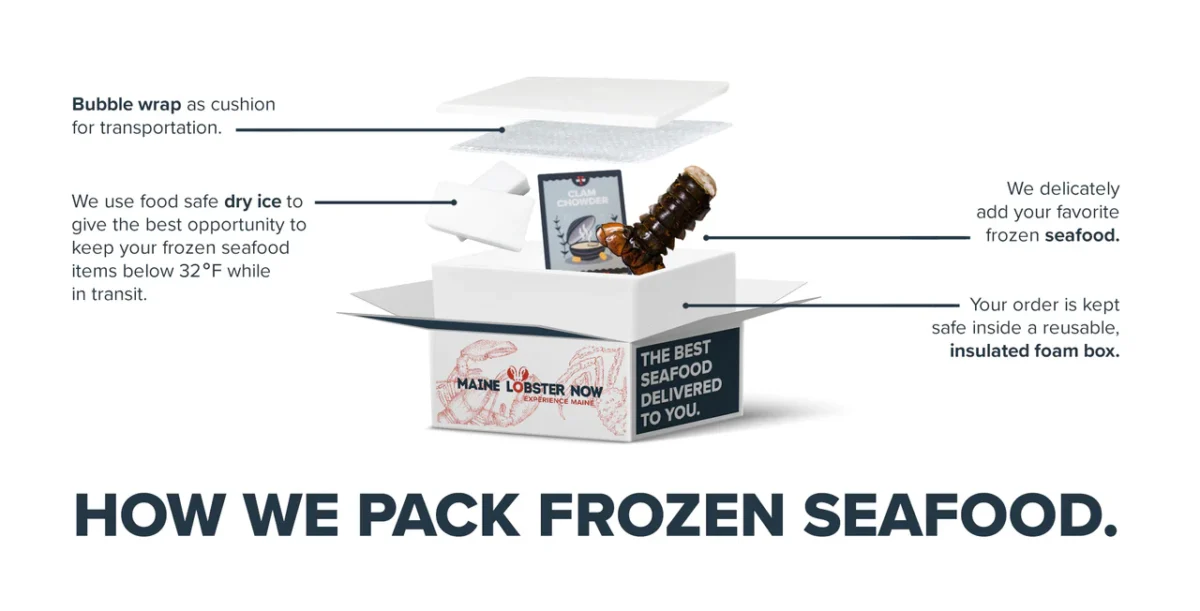 It arrived still frozen even on a high 80 degree day on my porch for about 6 hours packed very well..I shared with friends and they couldn’t get over the size, they were delicious.